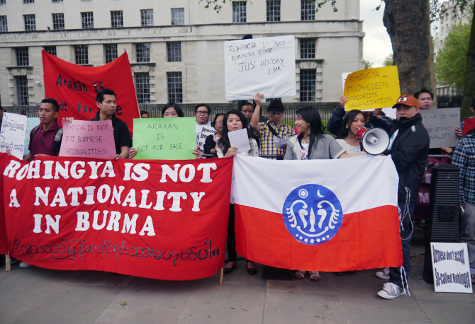 ရိုဟင္ဂ်ာသည္ ျမန္မာတိုင္းရင္းသား မဟုတ္ေၾကာင္း ျဗိတိန္ ဝန္ၾကီးခ်ဳပ္ေနထိုင္ရာ ေဒါင္းနင္းလမ္း၌ ဆႏၵထုတ္ေဖၚ